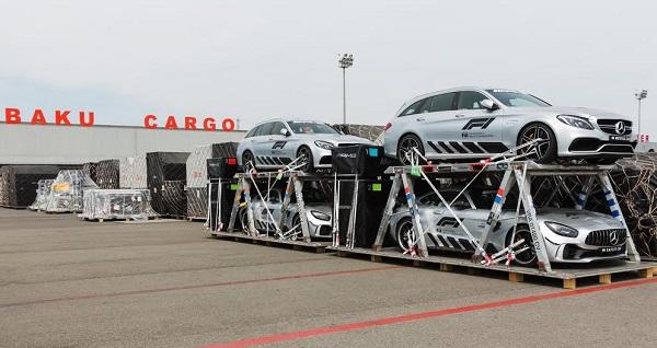 Heydər Əliyev Beynəlxalq Aeroportunun mətbuat xidmətindən Axar.az-a verilən məlumata görə, yarışlar çərçivəsində Bakıya yarış bolidləri, onlara xidmət üçün və yarışların təşkili üçün lazım olan avadanlıq da daxil olmaqla, 780 tondan çox yük Şanxay, Sinqapur və Bəhreyndən 8 reyslə gətirilib. Daha bir reys bu həftə yerinə yetiriləcək.