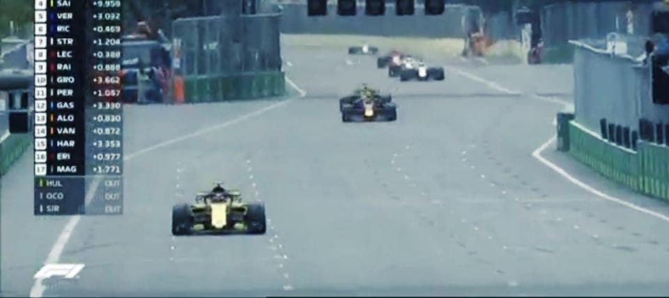 Hazırkı nəticəyə görə Fettel birinci, Hamilton ikinci, Bottas üçüncüdür. Sayns güclü hücumlar edir və Ferstappeni keçir. Arxasında Helkenverq gəlir.