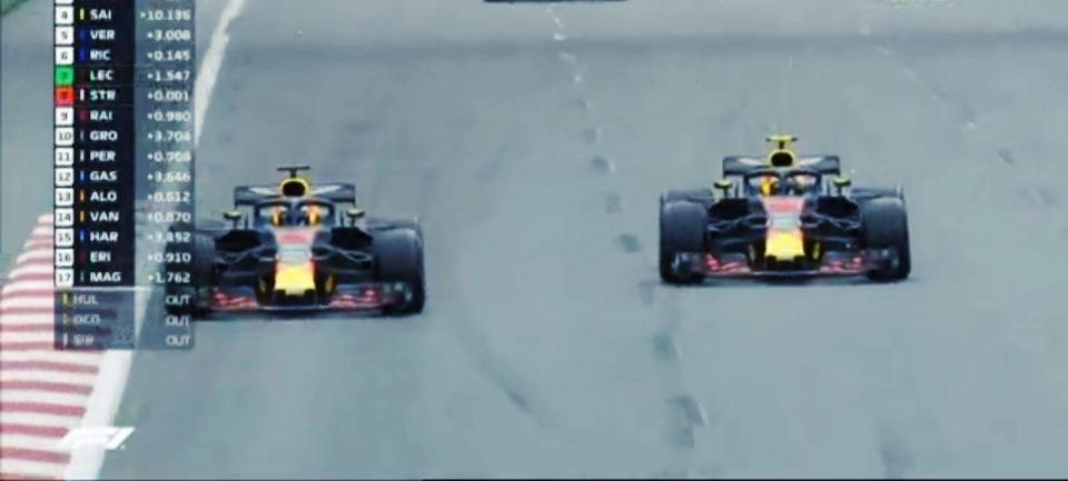 Maks Ferstappenin səhv trayektoriyası Daniel Rikkiardonu çaşdırıb və onların bolidləri toqquşub.