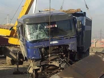 Qəza zamanı "Şaqman" yol kənarındakı "Mersedes" markalı minik maşınının üstünə yuvarlanır və səkiyə yıxılır.