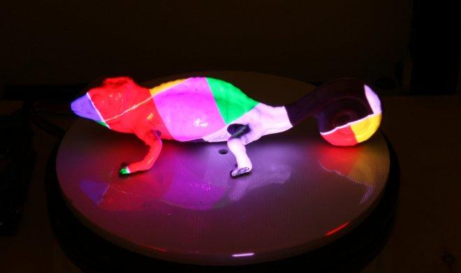 Alimlər işığa reaksiya verən göy, tünd qırmızı və sarı boyaları birləşdirərək “PhotoChromeleon” adlandırılmış xüsusi sprey hazırlayıblar ki, onu da istənilən səthdə istifadə etmək mümkündür. UF-proyektor obyektin səthində lazımi rəng kombinasiyasını “proqramlaşdırır”, bu proses 15-40 dəqiqə çəkir.