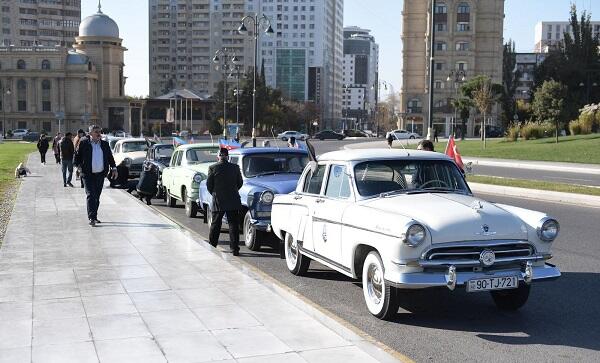 Axar.az xəbər verir ki, Heydər Əliyev Mərkəzinin qarşısından start götürən yürüşdə 1980-ci ilədək istehsal olunmuş avtomobillər iştirak edib.