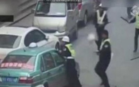 Çində polislə taksi sürücüsü arasında gərgin anlar yaşanıb.