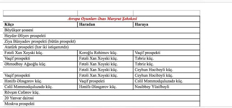 marşrut şəbəkəsi və hərəkət zolaqları müəyyən edilib.