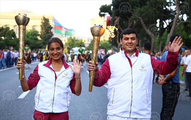 Daha sonra məşəlin Bakı estafeti başlayıb. Məşəl marafonunda ölkə başçısının ailə üzvləri də iştirak edib. Yürüşə birinci xanım Mehriban Əliyeva, prezidentin qızları Leyla və Arzu Əliyevalar və oğlu Heydər Əliyev qatılıb.