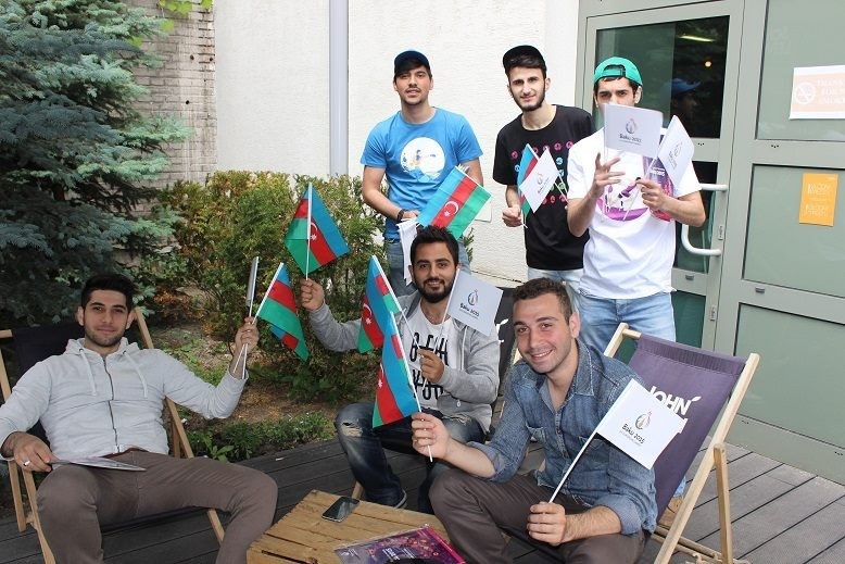 aksiya təşkilatçıları Azərbaycan və Bakı-2015-in bayraqlarını
