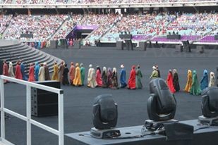 bayraqlarla Koroğlu uverturasının müşayiəti ilə stadiona daxil