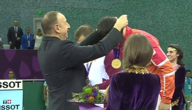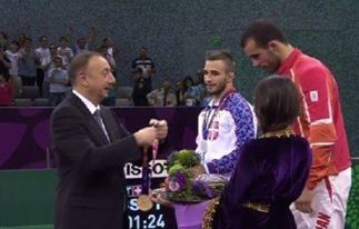 Birinci Avropa Oyunlarının üçüncü günündə yunan-Roma güləşçilərimizin qazandığı medalları Prezident İlham Əliyev şəxsən təqdim edib.
