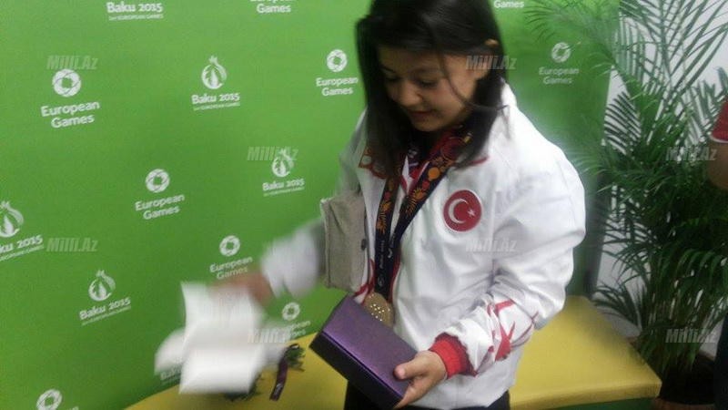 Milli.az idmançılara verilən həmin boğçanın içində nə olduğunu öyrənib. Saytın əməkdaşı ötən gün bürünc medal qazanan türkiyəli güləşçi Merve Kengerdən xahiş edib ki, həmin boğçanı açsın.