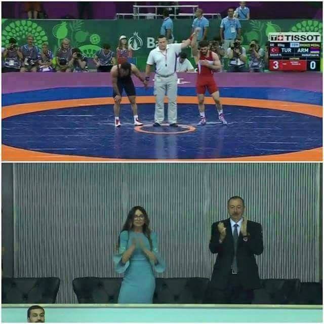 Bakıda keçirilən birinci Avropa Oyunlarında İlham Əliyev və ölkənin birinci xanımı Mehriban Əliyevanın erməni rəqibini diz çöktürən Türkiyə güləşçisini alqışlaması Türkiyə mətbuatında geniş işıqlandırılıb.