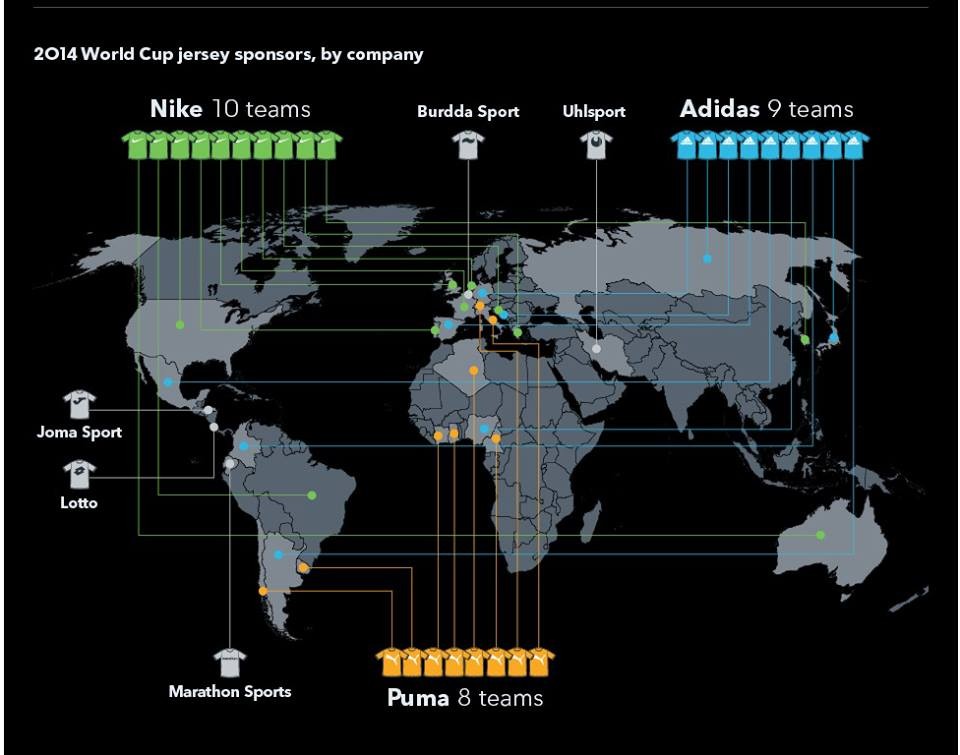 Təxminən 9 ölkə yığması "Adidas"ın, 8 dövlətin komandası isə