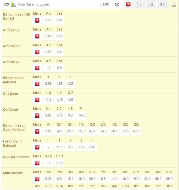 Digər görüş isə gecə yarısı, saat 01:00-da baş tutacaq. Burada Kolumbiya və Uruqvay milliləri kimin güclü olduğunu sübuta yetirməyə çalışacaqlar.