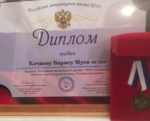Yazıçımız diplom və laureat medalı ilə təltif olunub. 2019-cu ildə Varisin romanlarından biri yüksək tirajla "Rossiyskiy kolokolun kitabxanası" seriyasından çap olunacaq.