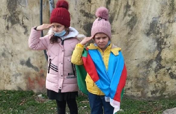 Ötən gün Kəlbəcər istiqamətində düşmənin açdığı atəş nəticəsində şəhid olan hərbçimiz Ayaz Nəzərovun dəfn mərasimi zamanı bayrağa bürünərək, onu əsgər salamı ilə yola salan uşaqlar diqqət çəkib.
