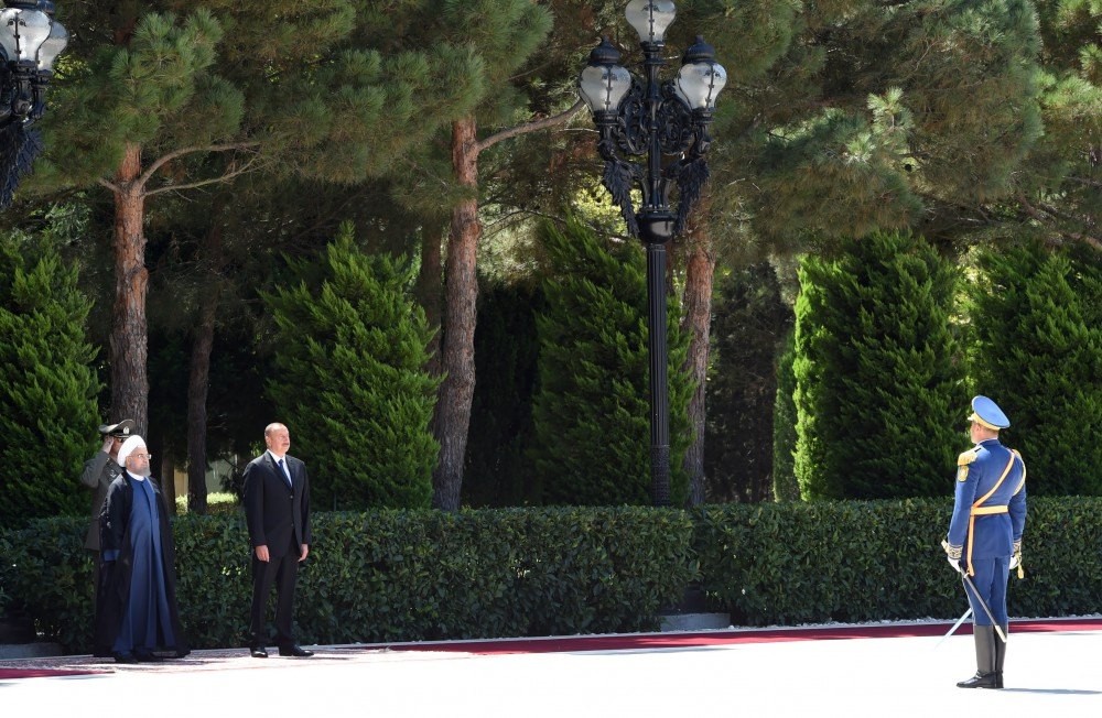 Prezident İlham Əliyev və Prezident Həsən Ruhani fəxri qarovul dəstəsinin qarşısından keçdilər.