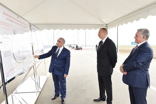 Sonra Prezident İlham Əliyev yolun rəmzi açılışını bildirən lenti kəsib.