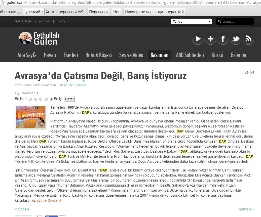 Fətulla Gülənin və Dialoq Avrasiya Platformasının (DAP) rəsmi