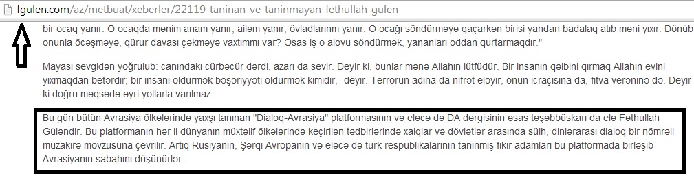 Qeyd edək ki, Fətullah Gülənin rəsmi saytında Dialoq Avrasiya