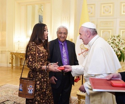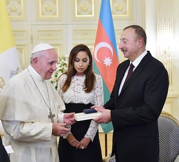 Axar.az xəbər verir ki, görüş zamanı Papa Fransisk Prezident İlham Əliyevin ailə üzvlərinə hədiyyələr təqdim edib.