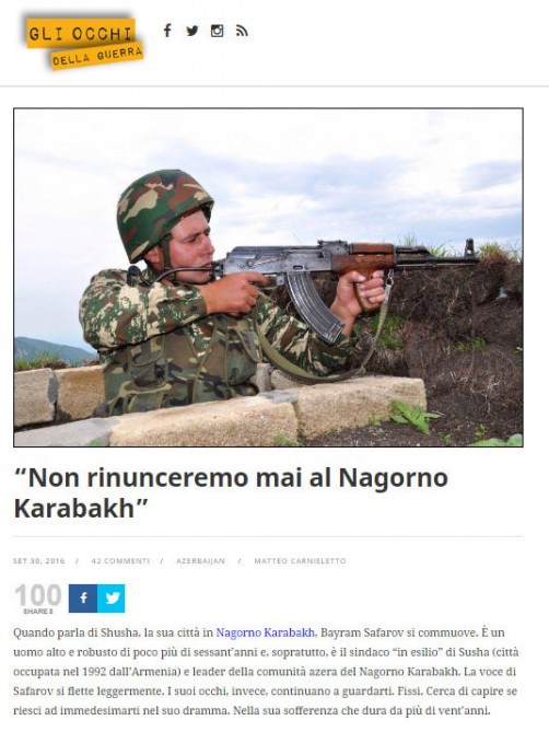 Səfərovdan aldığı müsahibə əsasında hazırladığı "Dağlıq Qarabağdan
