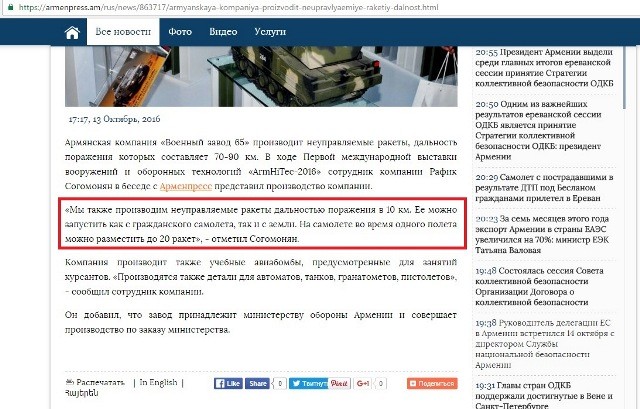 Belə ki, İrəvanda keçirilən "ArmHiTec-2016" müdafiə sərgisində