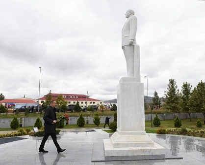 Əliyevin şəhərin mərkəzində ucaldılmış abidəsini ziyarət edərək