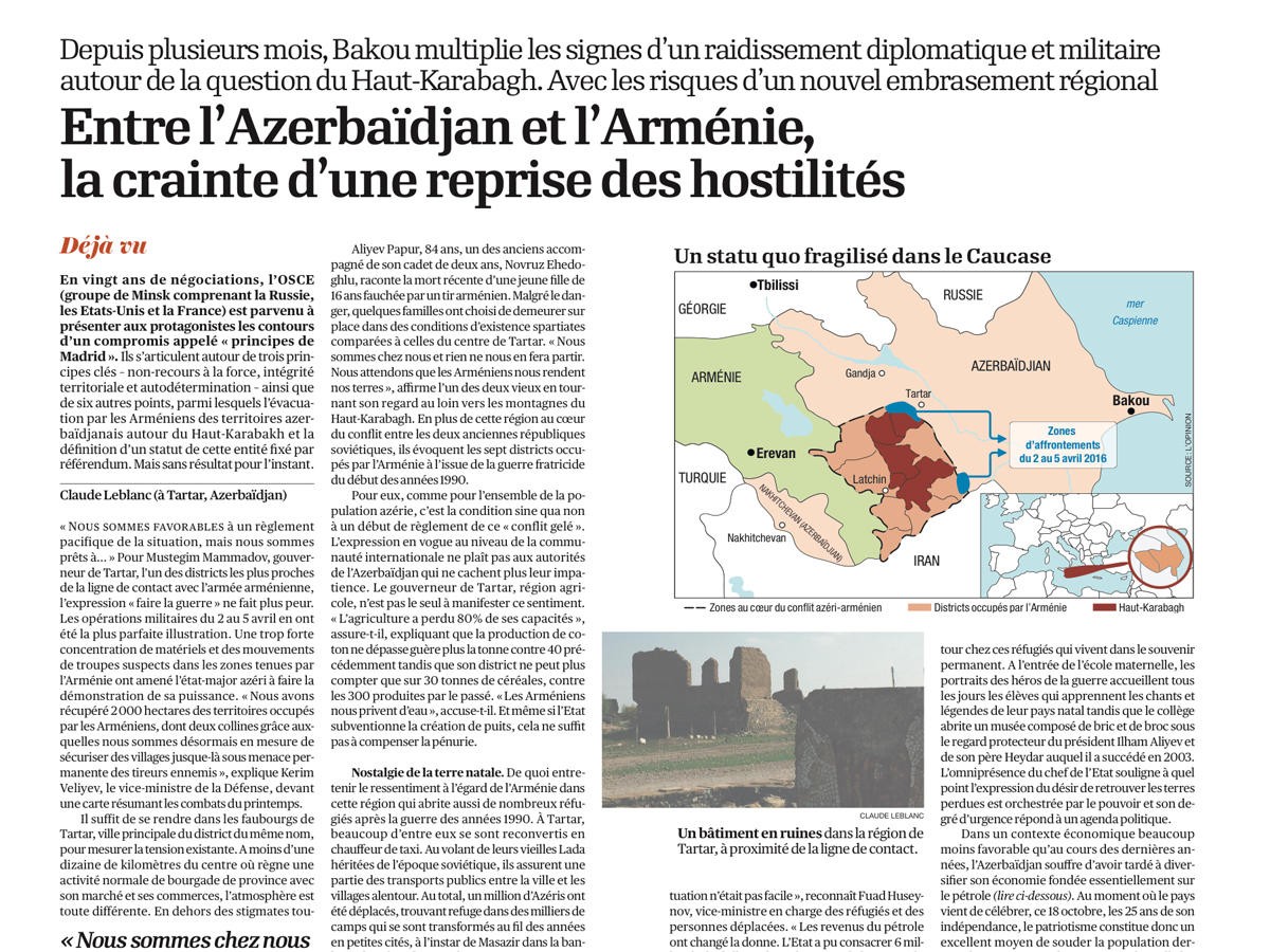nüfuzlu l’Opinion qəzetində "Azərbaycan-Ermənistan, hərbi