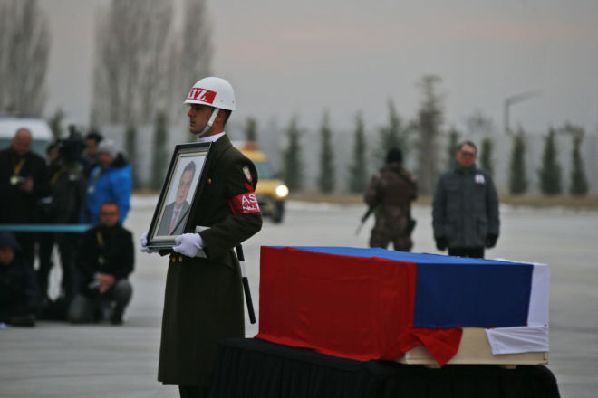 Dünən Ankarada rəsm sərgisində sui-qəsd nəticəsində öldürülən Rusiyanın Türkiyədəki səfiri Andrey Karlovun cənazəsi Esenboğa Hava Limanında təşkil edilən rəsmi vida mərasimi ilə Moskvaya yola salınıb.