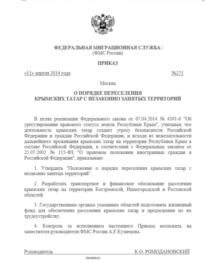 köçürülməsi" haqqında qərarda bildirilir ki, Krım tatarlarının