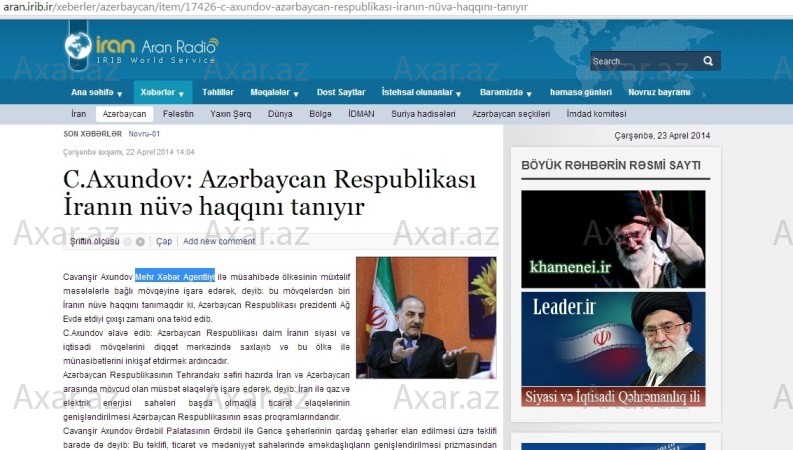 "Azərbaycan Respublikası İranın nüvə haqqını