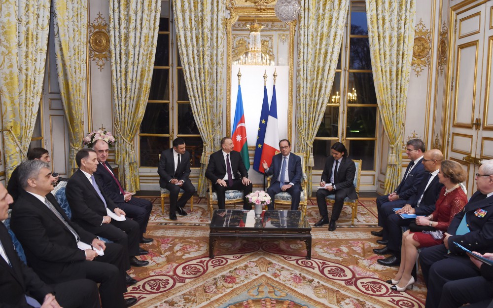 Martın 14-də Parisdə, Yelisey Sarayında Azərbaycan Respublikasının Prezidenti İlham Əliyevin və Fransa Respublikasının Prezidenti Fransua Ollandın görüşü olub.