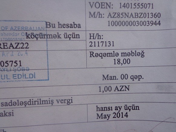 alınır. Bizə verdikləri kağızın üzərində gördüyünüz kimi, 18 manat