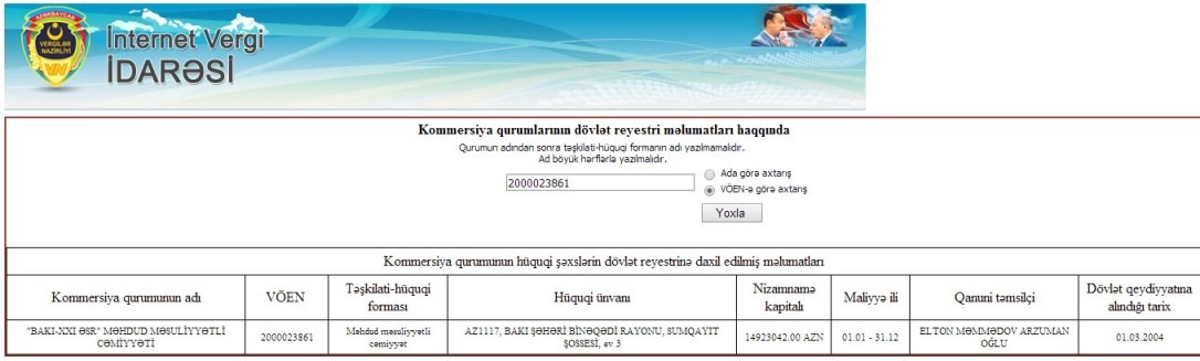 Vergilər Nazirliyinin rəsmi internet səhifəsində vergi