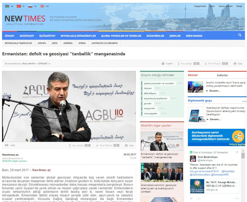 Mütəxəssislər son zamanlar qlobal geosiyasi miqyasda baş verən sürətli hadisələrin arxasında dayanan məqamları təhlil edirlər. Analizlər göstərir ki, bütövlükdə dünyanın siyasi mənzərəsi dəyişir. Dövlətlərarası münasibətlər daha həssas məqamlarla zənginləşir. Bunun fonunda xarici siyasət də çevik olmalı və müasir çağırışlara cavab verməlidir. Ermənistanın siyasi rəhbərliyinin atdığı addımların təhlili təsdiq edir ki, rəsmi İrəvan xeyli fərqli mövqedədir. Ermənistan faktiki olaraq müasir şəraitə zidd olan, qeyri-çevik və səbatsız siyasət yeritməkdədir. Xüsusilə Dağlıq Qarabağ münaqişəsi illə bağlı Ermənistan rəhbərliyinin tutduğu mövqe narahatlıq doğurur. Burada hələ də köhnə stereotiplərdən xilas ola bilməyiblər. Absurd məqsədlər uğrunda səmərəsiz fəaliyyət göstərməkdədirlər. Bu isə Cənubi Qafqaz üçün risk faktoru yaradır. Hər an müharibə alovlana bilər.