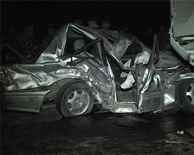 Qəza nəticəsində tamamilə yararsız hala düşən "Mersedes"də