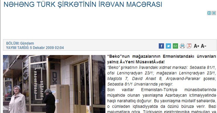 sayında yayımlanıb. Qəzet şirkətin İrəvandakı hüquqi ünvanını da