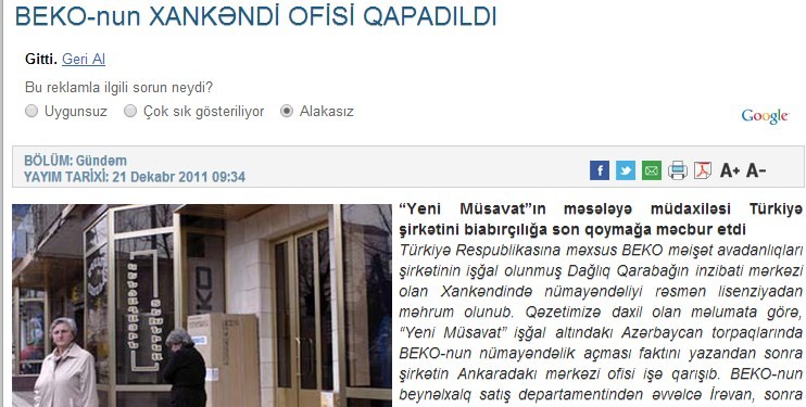 istinadla yaydığı və Koç Holdinqin Xankəndində fəaliyyətini əks