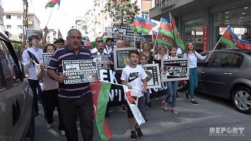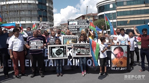 Əllərində “Uşaq qatili Ermənistanı qınayırıq" şüarı tutan mitinq iştirakçıları körpə Zəhranın qatillərinə ən sərt cəzanın verilməsini tələb ediblər.