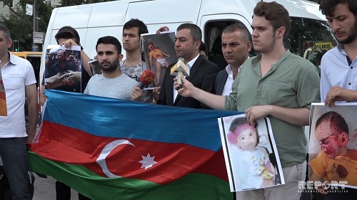 Ermənistan silahlı qüvvələrinin iyulun 4-də Füzuli rayonunun Alıxanlı kəndini atəşə tutması nəticəsində biri iki yaşlı uşaq olmaqla 2 dinc sakinin həlak olması və daha birinin yaralanmasına etiraz əlaməti olaraq aksiya keçirilib.