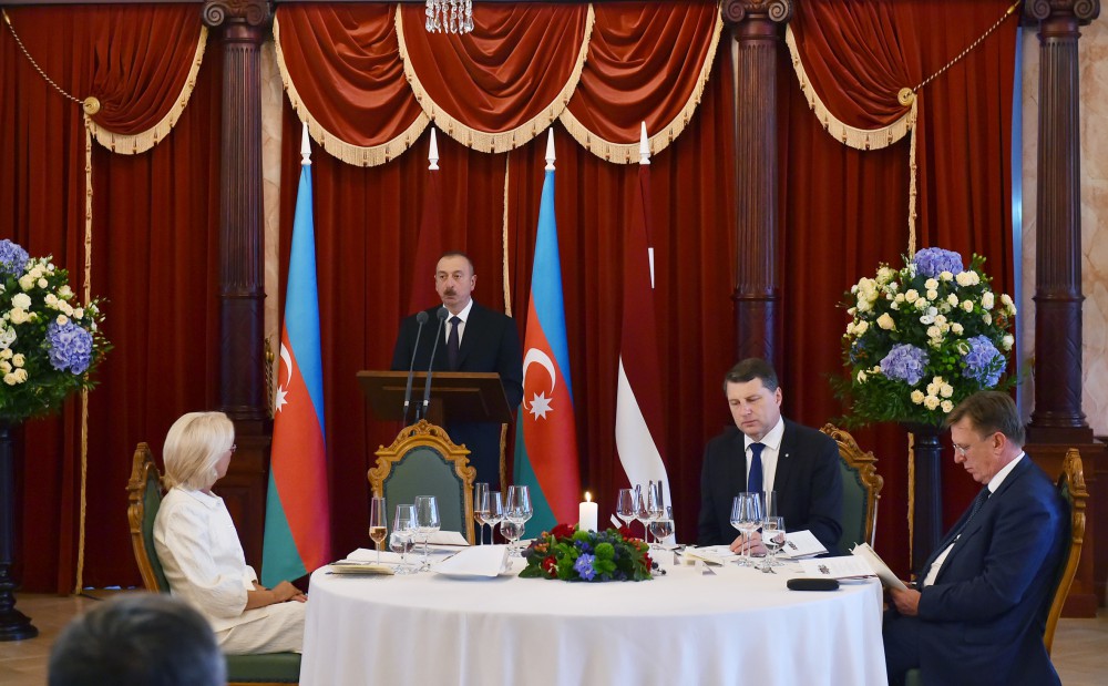 İyulun 17-də Latviya Respublikasının Prezidenti Raymonds Veyonisin adından Azərbaycan Respublikasının Prezidenti İlham Əliyevin şərəfinə rəsmi ziyafət verilib.