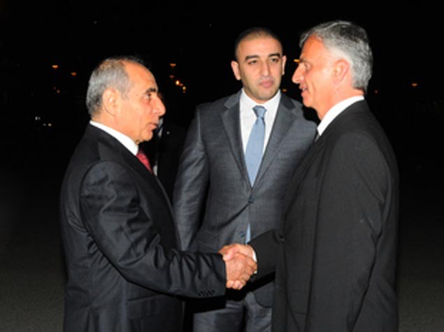 Məlumata görə, Heydər Əliyev Beynəlxalq Aeroportunda qonağı baş nazirin birinci müavini Yaqub Eyyubov və digər rəsmi şəxslər qarşılayıblar. /APA/