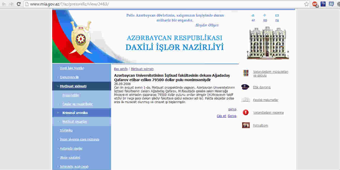 ki, DİN-in rəsmi saytında A.Qafarov 2006-cı ildə dələduzluq maddəsi