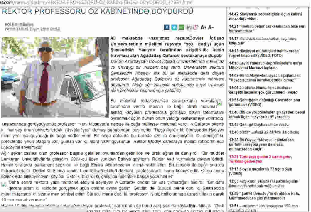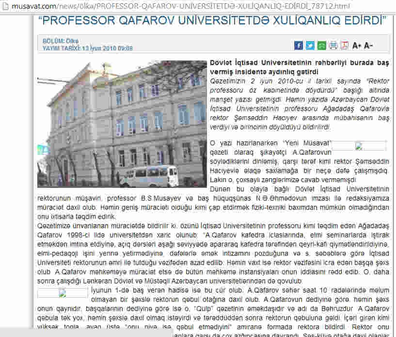 Burada da onun fəaliyyəti qara zolağa düşüb. Qafarov dekan