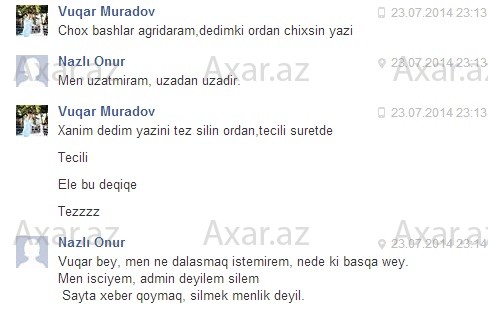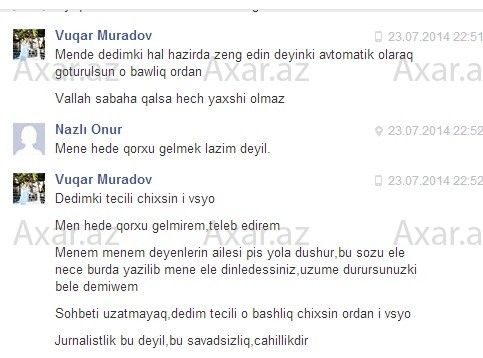 Hədələr Feysbuk sosial şəbəkəsinin inboks bölümündə yazılıb.