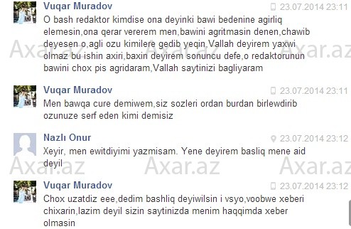 Muradov 23 iyulda Axar.az-da yayımlanan müsahibəsinə görə redaksiya