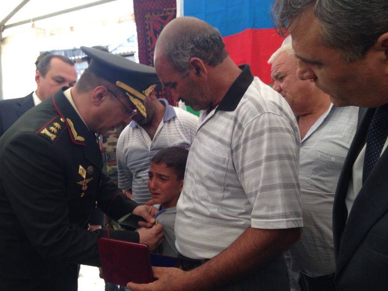 Baş gizir Almazov İsanin təltif edildiyi medal general Rövşən Əkbərov tərəfindən övladına təqdim edilib.