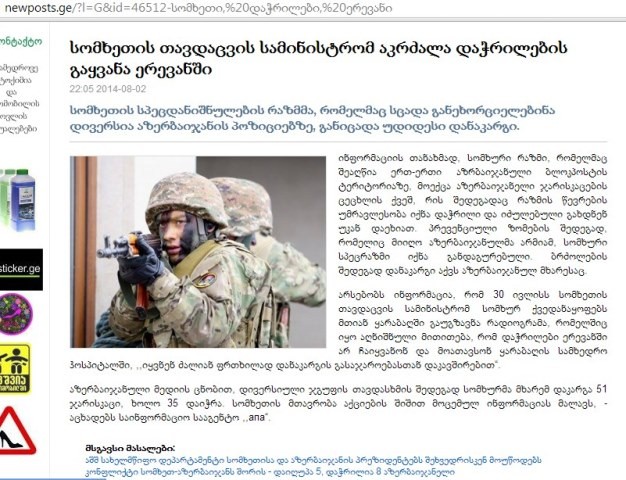 Xatırladaq ki, erməni mediasında cəbhə ilə bağlı xəbərlər demək olar ki, yoxdur və əksər hallarda yalnız rəsmi və qısa məlumatdan başqa heç nə vermirlər.