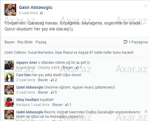 Feysbuk sosial şəbəkəsində Qabil Abbasoğlunun paylaşdığı status
