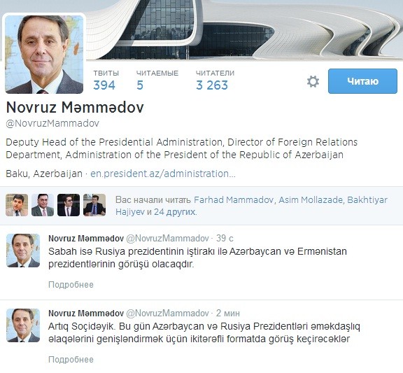 əlaqələr şöbəsinin müdiri Novruz Məmmədov özünün Tvitter