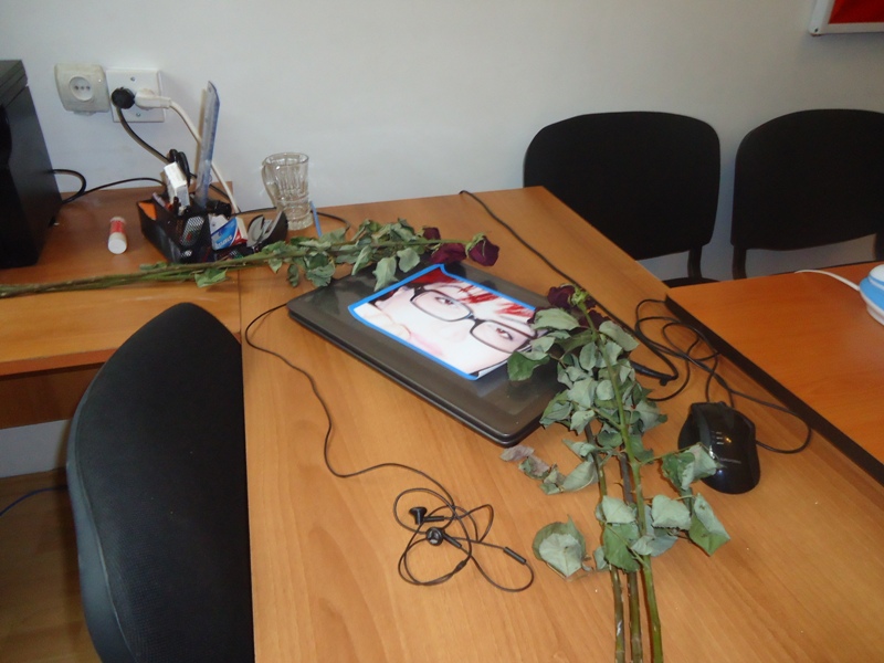 solmuş qızılgüllər, kompüterinin üzərindəki şəkli. Bunlar onun